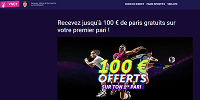 Le bonus de bienvenue Vbet est de 100⏠de freebets (paris gratuits) maximum, offerts Ă tout nouveau parieur qui perd son premier enjeu. La correspondance est de 100% du montant du pari. Cette offre vient avec des conditions toutes simples, dont voici lâessentiel :